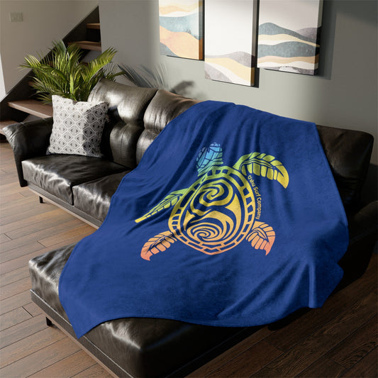 Rainbow Honu Green Sea Turtle Throw Blanket - Dark Blue