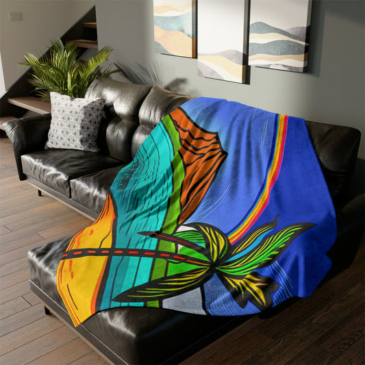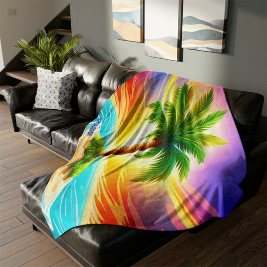 Hawaiian Island Throw Blanket – Cozy Fleece Blanket with Vibrant Ocean Rainbow Hues