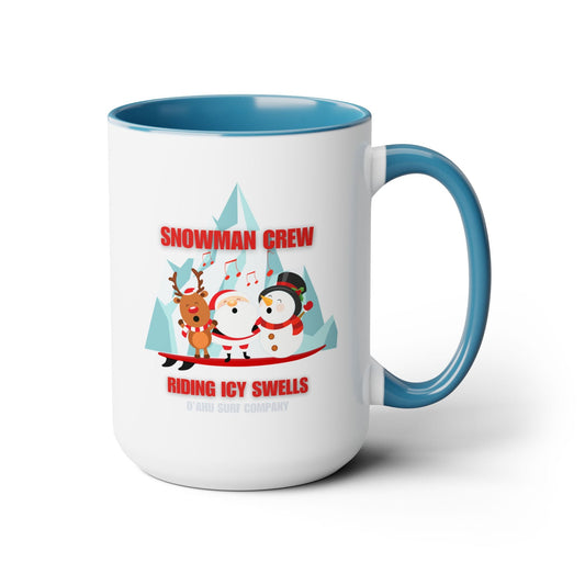 Fun Christmas Mug Featuring Snowman Crew - Two-Tone Coffee Mug 15oz
