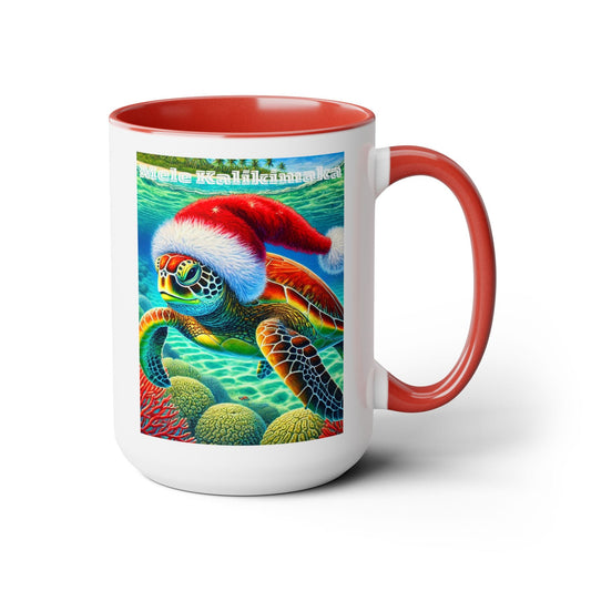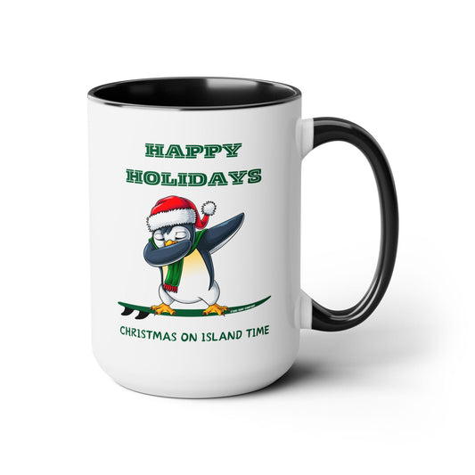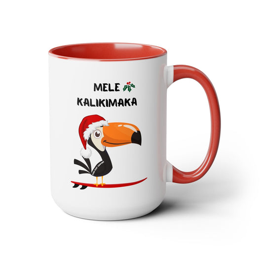Mele Kalikimaka Toucan Surfing Two-Tone Coffee Mug - Hawaii Christmas Holiday Coffee Cup 15oz