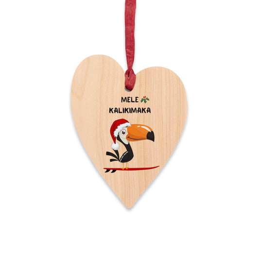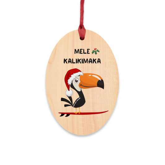 Surfing Toucan Christmas Tree Ornament - Solid Wood