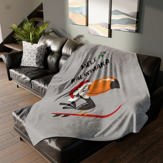 Mele Kalikimaka Toucan Surfing Fleece Christmas Holiday Throw Blanket
