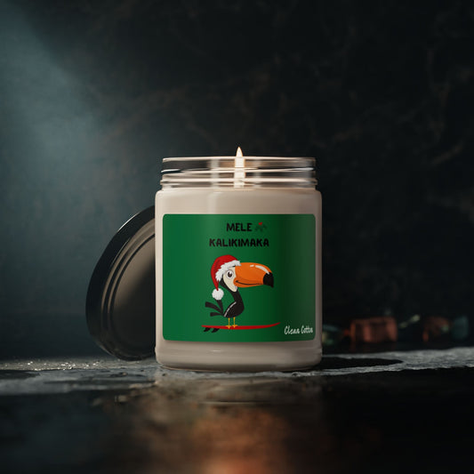Mele Kalikimaka Toucan Surfing Scented Candle, 9oz in 3 great scents - Sea Salt & Orchid, Clean Cotton, White Sage & Lavender
