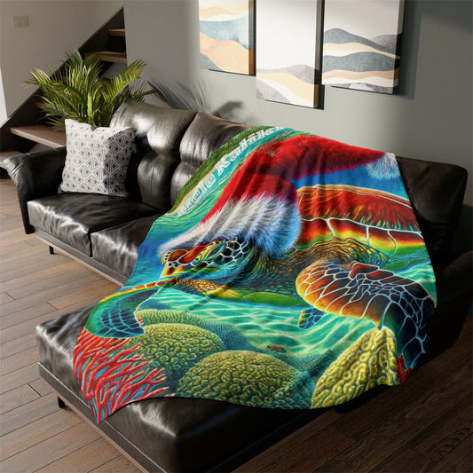 Mele Kalikimaka Hawaii Sea Turtle Fleece Blanket - Christmas Holiday Throw