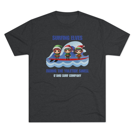 Surfing Elves Riding the Yuletide Swell Christmas T-shirt